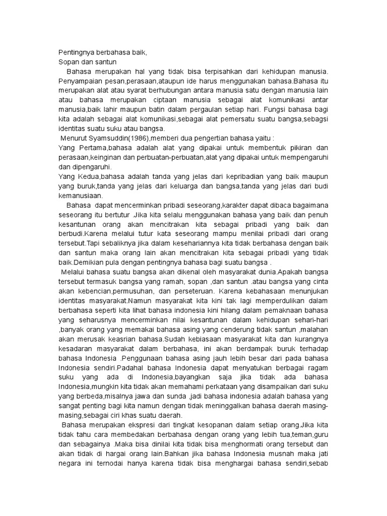 Artikel Rendahnya Kesantunan Berbahasa Dalam Masyarakat Pdf