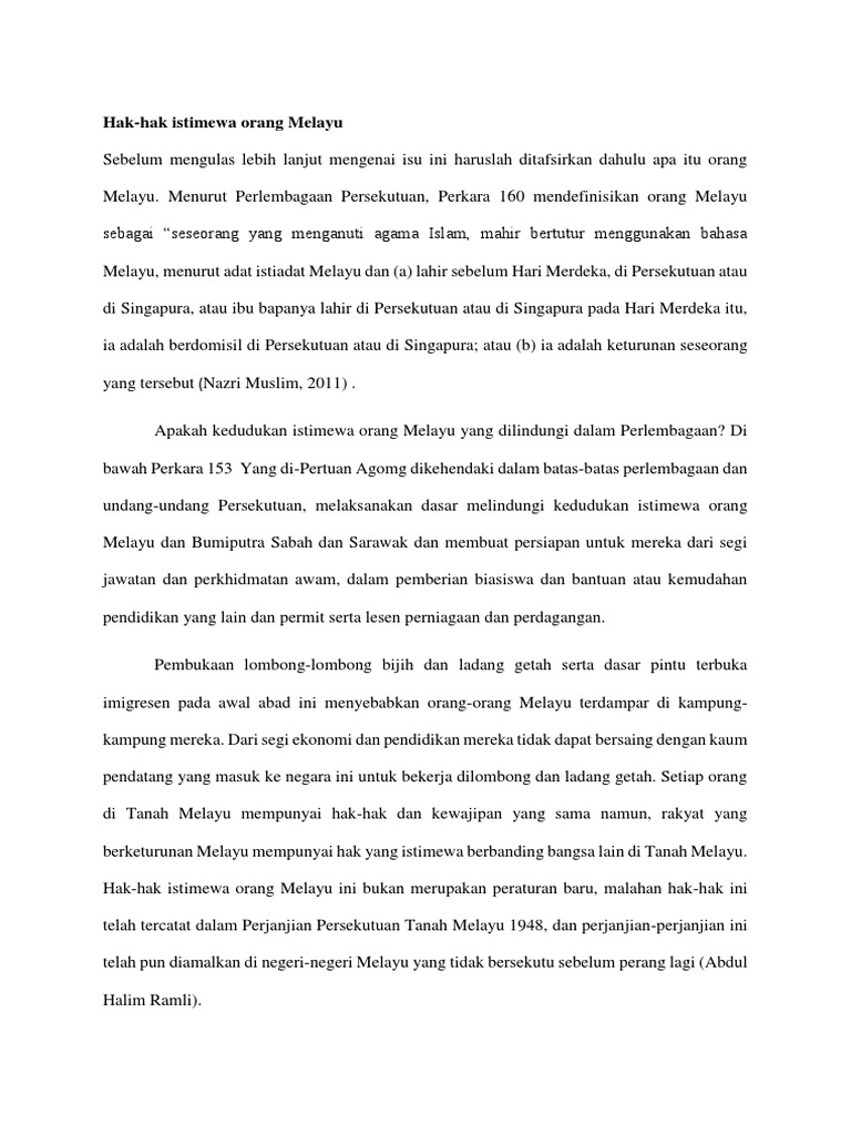 Ia hendaklah ditafsir menurut sejarah dan falsafah yang ada di sebalik kewujudannya. HAK DAN KEISTIMEWAAN ORANG MELAYU DAN BUMIPUTERA Disediakan oleh. Hak Keistimewaan Orang Melayu.