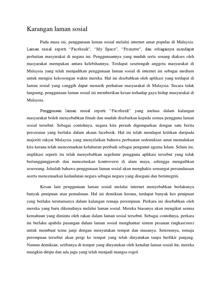 Penyalahgunaan Media Sosial di Masa Kini. Karangan Kebaikan dan Keburukan Media Sosial. Laman sosial seperti Facebook My Space Frienster dan sebagainya mendapat perhatian masyarakat di.
