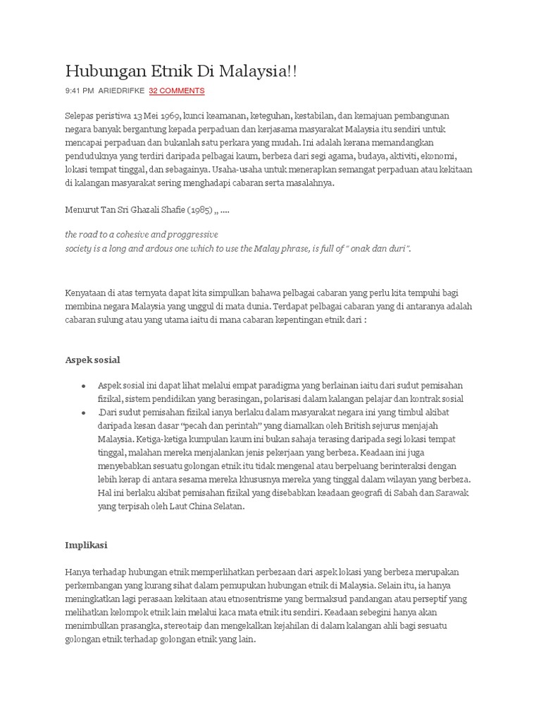 Hubungan Etnik Di Malaysia Pdf