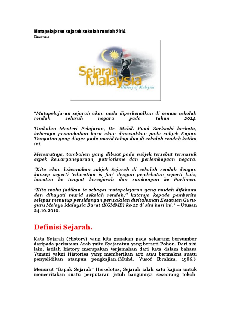 Matapelajaran Sejarah Sekolah Rendah 2014 Pdf