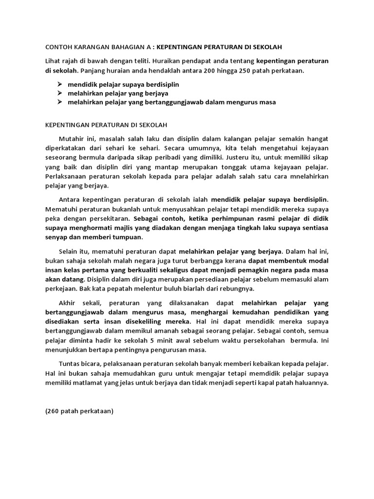 Contoh Karangan Bahagian A Kepentingan Peraturan Di Sekolah Pdf